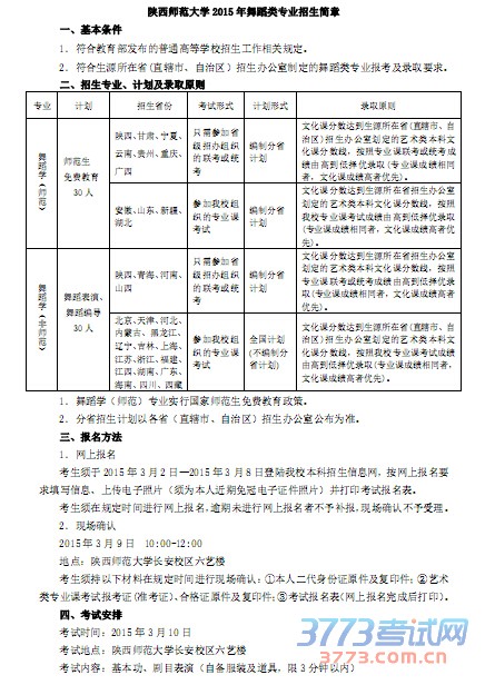 [组图]陕西师范大学2015年舞蹈类专业招生简章