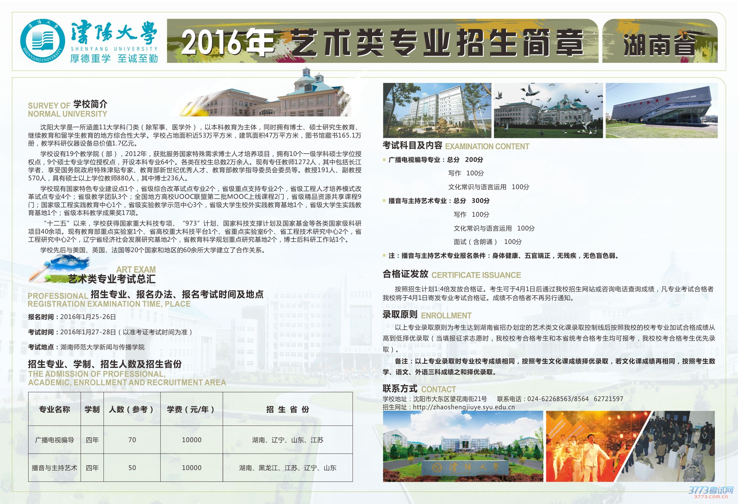 相关文章 沈阳大学2016年广播电视编导专业校考成绩查询2016年沈阳大学播音主持专业校考成绩查询2016年沈阳大学艺术类校考成绩查询开通2016沈阳大学艺术类录取办法说明沈阳大学2016年艺术类专业设置说明2016年沈阳大学艺术类专业招生简章2016沈阳大学艺术校考时间招生专业(黑龙江)沈阳大学2016年山东艺术类专业招生简章沈阳大学2016年江苏艺术类专业招生简章沈阳大学2016年吉林艺术类专业招生简章 触屏版 电脑版 3773考试网 琼ICP备12003406号-1