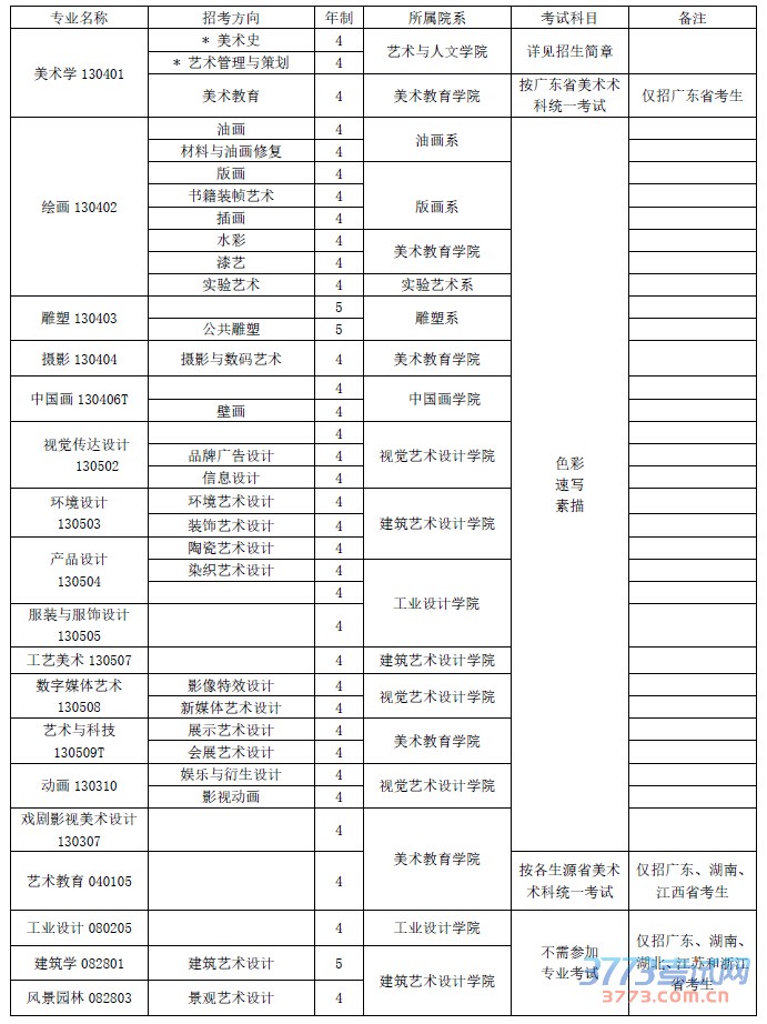 * 注:考生报考我校美术学(美术史)、美术学(艺术管理与策划)专业,不需参加色彩、速写、素描三科校考,具体报考办法、考试科目和考试要求将在我校正式公布的招生简章中详细说明。