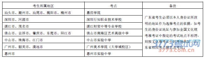 2、各美术类校考专业(除美术学)广东省内考点安排:
