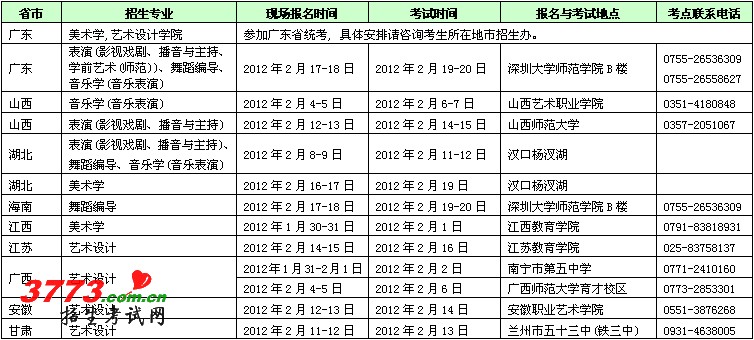 深圳大学2012年计划招收国家任务全日制艺术类本科生518名,分区域分专业计划如下: