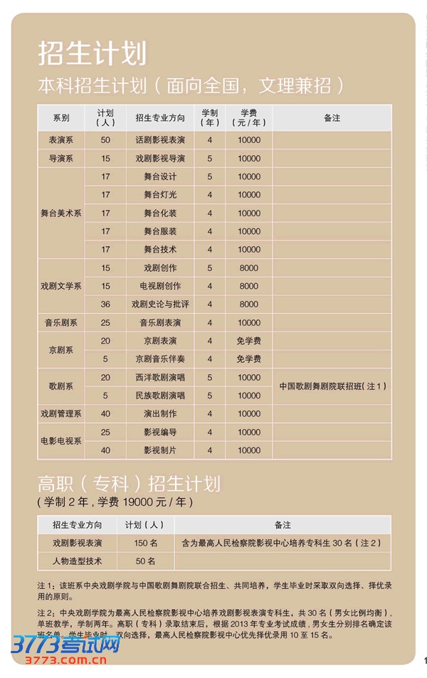 [图文]中央戏剧学院2013年艺术类本科招生计划