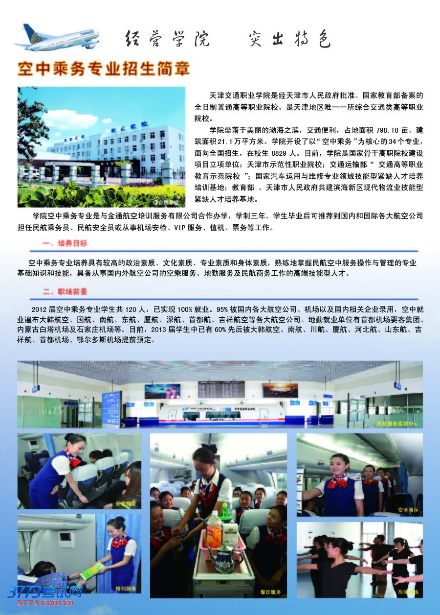 天津交通职业学院2013年空中乘务招生简章(山西)