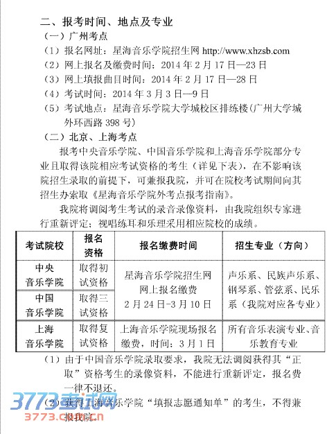 星海音乐学院2014年招生报考时间考点星海音乐学院2014年招生