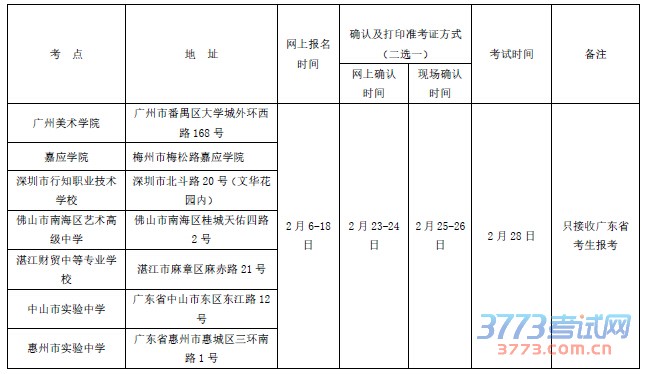 2、各美术类校考专业(除美术学)广东省内考点安排: