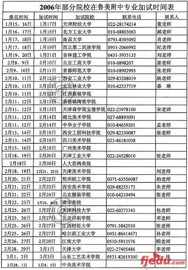 2006年在鲁迅美术学院北校区(鲁美附中)加试的各大美院时间表
