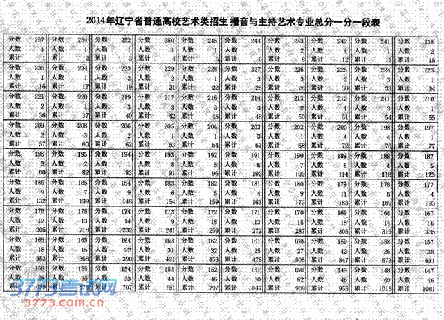[组图]2014辽宁播音主持艺术专业统考成绩一分一段表