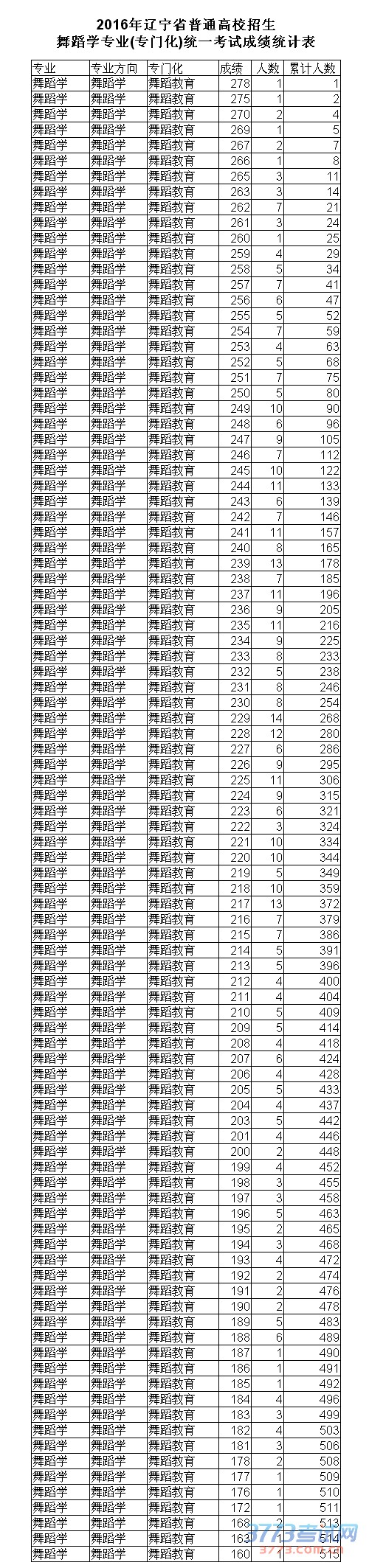 [图文]2016辽宁舞蹈学专业联考成绩一分一段表