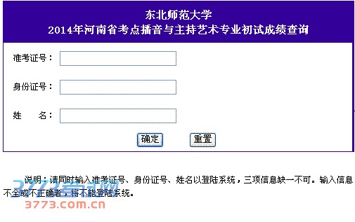 东北师范大学2014年河南省考点播音与主持艺术专业初试成绩查询