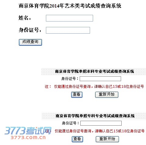 南京体育学院2014年艺术类校考成绩查询系统http://zs.nipes.cn/cj.asp