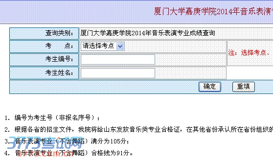 查询类别: 厦门大学嘉庚学院2014年音乐表演专业成绩查询
