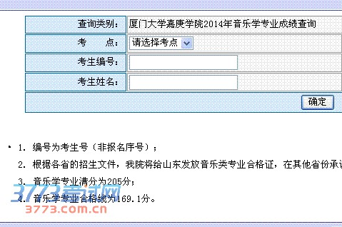 查询类别: 厦门大学嘉庚学院2014年音乐学专业成绩查询