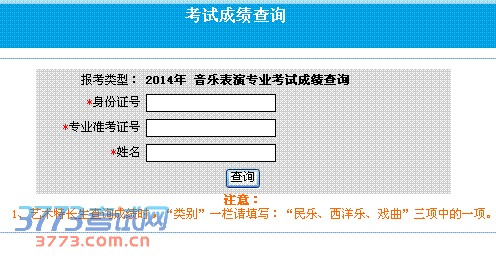 考试成绩查询报考类型: 2014年 音乐表演专业考试成绩查询