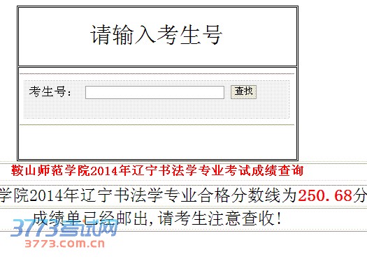 [图文]鞍山师范学院2014年辽宁书法学专业考试成绩查询