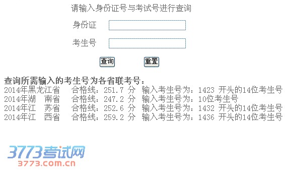 2014年湖 南省 合格线:247.2 分 输入考生号为:10位考生号