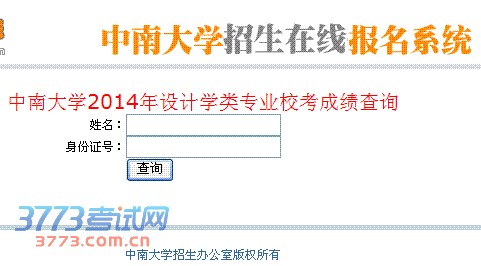 中南大学2014年美术类成绩查询网址:http://zhaosheng.csu.edu.cn/ChengJi/DesignQS.aspx