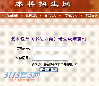 西安交通大学2014年书法专业校考成绩查询 艺术设计(书法方向)考生成绩查询