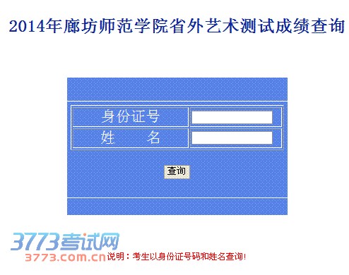 廊坊师范学院2014年艺术类校考专业成绩查询网址:http://www.lfsfxy.edu.cn/tsjb/cx.asp