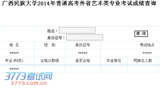 广西民族大学2014年普通高考外省艺术类专业考试成绩查询