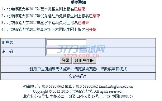 相关文章 2017北京师范大学美术校考成绩查询方式2017北京师范大学运动训练专业招生简章2017北京师范大学高水平艺术团录取原则2017北京师范大学艺术特长生申请材料2017北京师范大学艺术特长生报名测试安排2017北京师范大学高水平艺术团招生项目计划及要2017北京师范大学高水平艺术团招生简章2017北京师范大学高水平运动队报名时间材料2017北京师范大学高水平运动队招生简章2017北京师范大学高水平运动队女子足球项目测试2017北京师范大学艺术类校考专业介绍2017北京师范大学艺术类校考成绩查询方式2017北京师范大学艺术类专业录取规则2017北京师范大学艺术类专业考试内容及分值2017北京师范大学艺术类考试时间考点 推荐专题 · 英语四六级查分 · 甘肃省教育考试院 · 吉林省教育考试院 · 湖北省教育考试院 · 安徽招生考试网 · 河南招生考试信息网 · 招考资讯网 · 浙江省教育考试网 · 湖北招生信息网 · 重庆招考信息网 · 广东考试服务网 · 上海教育考试院 · 湖南省教育考试院 · 广西招生考试网 · 云南招生考试院 · 黑龙江省招生考试院 · 中考志愿填报 · 中考分数线 · 中考录取查询 · 中考查分网 · 中考作文网 · 中考试题答案网 · 高考零分作文 · 高考成绩查询2017 · 高考试题及答案 · 公安警察院校招生 · 西藏教育考试院 · 青海招考信息网 · 云南省招考频道 · 四川省教育考试院 · 陕西招生考试信息网 · 新疆招生网 · 广东省教育考试院 · 湖南招生考试信息港 · 重庆市教育考试院 · 湖北教育考试网 · 江西省教育考试院 · 江苏省教育考试院 · 吉林省教育信息网 · 黑龙江招生考试信息港 · 山西招生考试网 · 天津市教育招生考试院 · 北京教育考试院 · 辽宁招生考试之窗 · 内蒙古招生考试信息网 · 河北省教育考试院 · 山东省教育招生考试院 · 广西招生考试院 · 海南省考试局 · 河南省招生办公室 · 贵州省招生考试院 · 宁夏教育考试院 · 浙江教育考试院 · 上海招考热线 · 福建省教育考试院 · 安徽省教育招生考试院 · 成绩查询、录取查询、网上报名系统 · 香港高校内地招生 · 空军招飞 · 自主招生保送生小语种 · 中国大学排行榜 · 高考满分作文|高考作文 · 高考志愿填报指导、平行志愿 · 高水平运动员体育特长生招生 · 高考报名 · 艺术特长生 · 空乘招生民航招飞 · 高考志愿填报 · 军校招生网_国防生招生_军校名单 · 单独招生 移动站 电脑版 专题 3773考试网 琼ICP备12003406号-1
