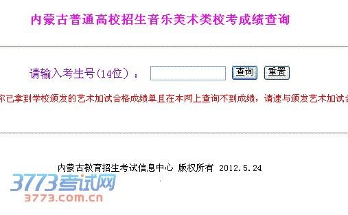 2014年内蒙古普通高校招生音乐美术编导其他艺术类校考成绩查询
