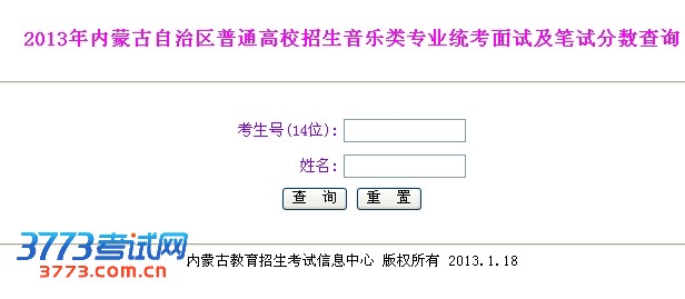 2013年内蒙古自治区普通高校招生音乐类专业统考面试及笔试分数查询