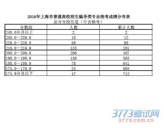 2016年上海市普通高校招生编导类专业统考合格线确定