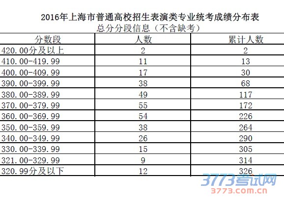 2016年上海市普通高校招生表演类专业统考合格线确定