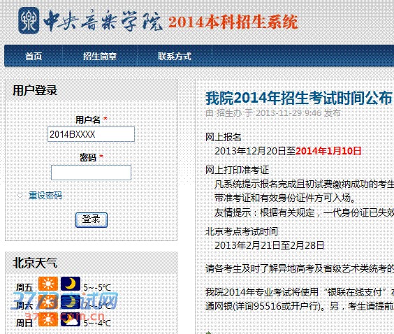 [图文]中央音乐学院2014年艺术类招生报名系统