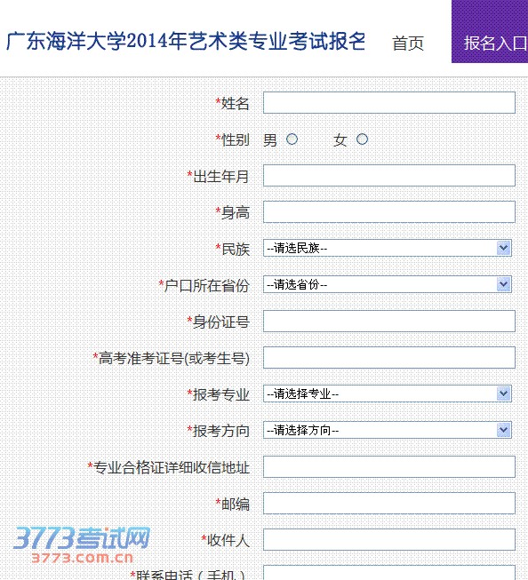 2、考生在“报名入口”页面按照报名表的格式认真填写报名信息。