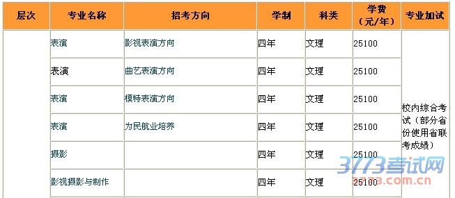 •报名考试费:表演(为民航业培养)、书法学专业初、复试一次性缴纳报名费180元;其他专业初试报名费100元,复试费80元。