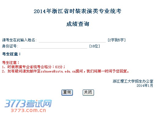 [图文]2014浙江时装表演类专业统考成绩查询入口