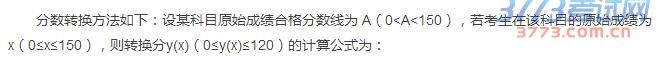 教育部考试中心根据考试标准和当次考试情况,确定各科目全国统一的合格分数线。由于各个科目难度存在差异,其合格分数线不尽相同。为统一各科目的合格分数线,采用线性转换的方法,将考生0~150分量表上的原始成绩换算为0~120分量表上的转换分,并使各科目的合格分数线统一转换为70分。