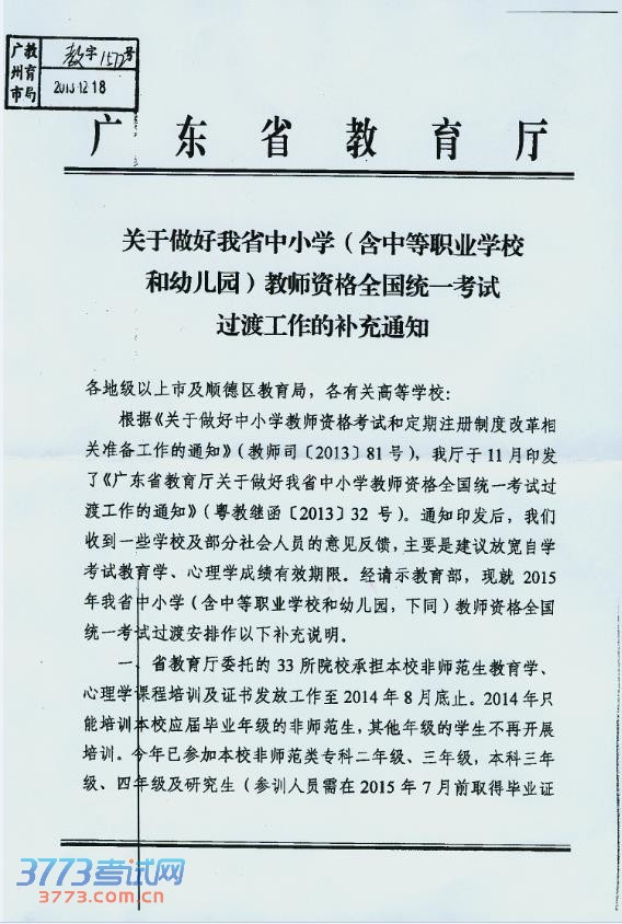 关于做好我省中小学(含中等职业学校和幼儿园)教师资格全国统一考试过渡工作的补充通知
