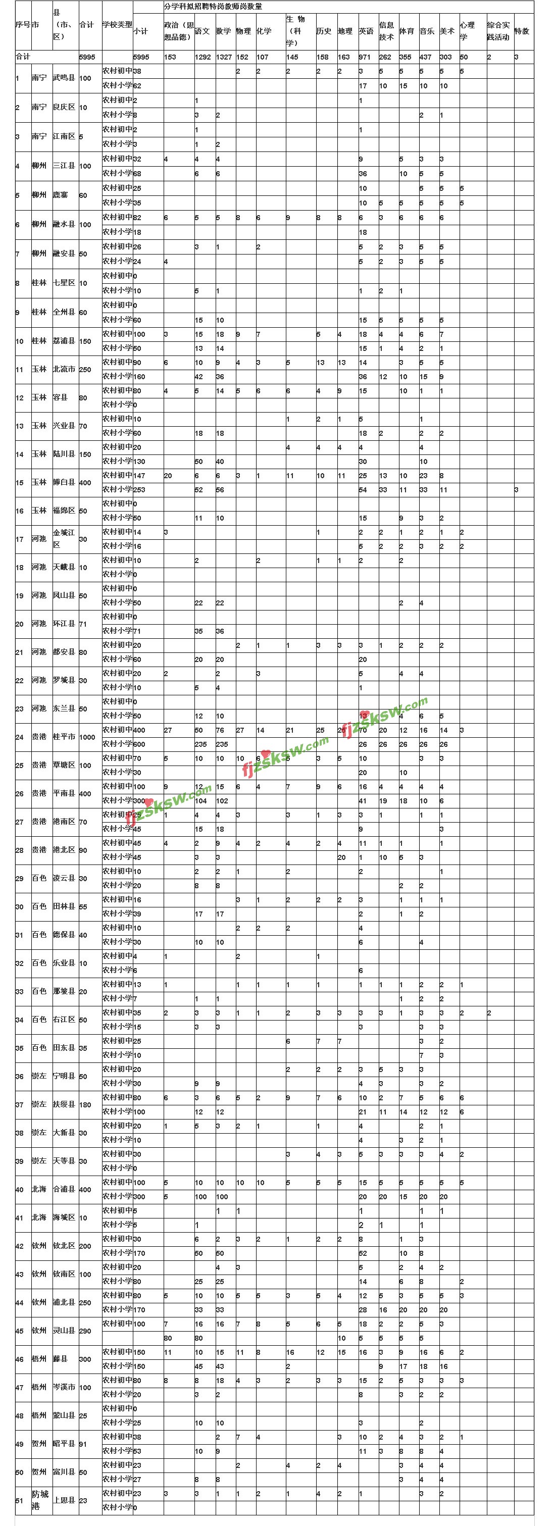 [图文]广西2010年农村特岗教师招聘岗位设置计划
