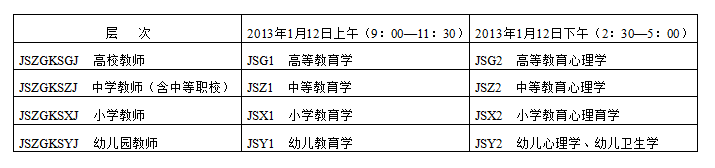 [图文]2013年1月云南教师资格考试时间及科目安排