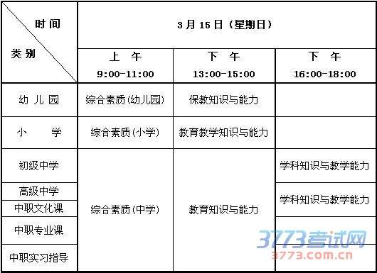 2015年上半年中小学教师资格考试笔试日程安排表
