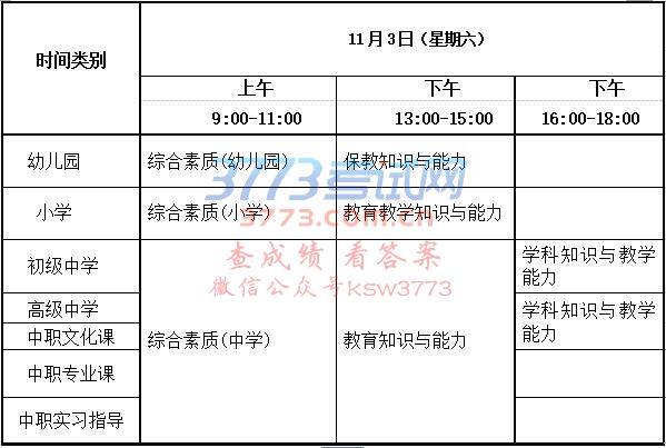 2018年下半年中小学教师资格考试(笔试)日程安排: