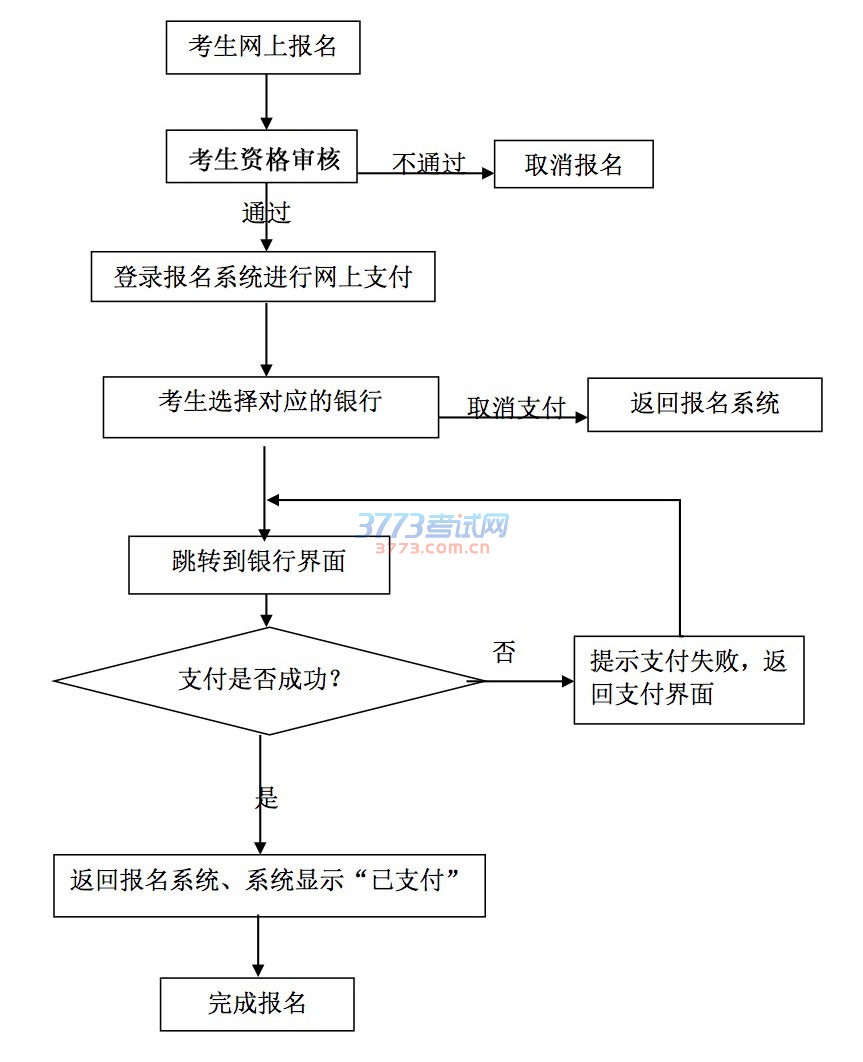 3.现场确认通过,考生须在12月21日12:00前完成网上付费(网上支付流程图见附件3)。未经现场确认、未按规定时间缴纳报名考试费的人员,视为自动放弃本次报考。