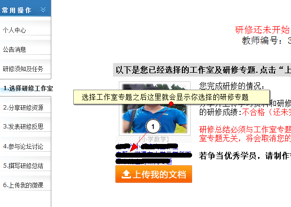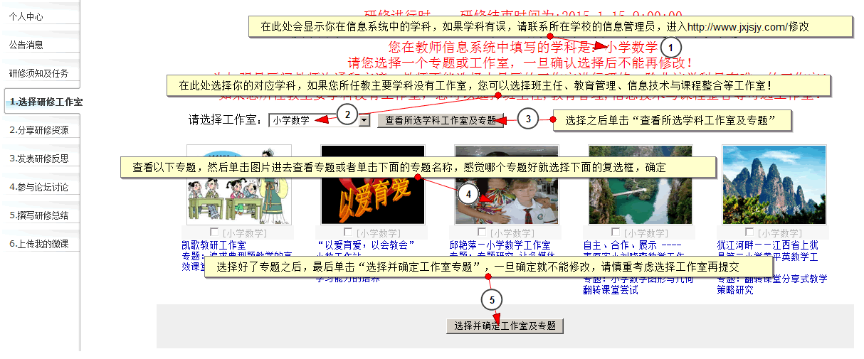 第一步:单击选择研修工作室,查看选择的研修工作室