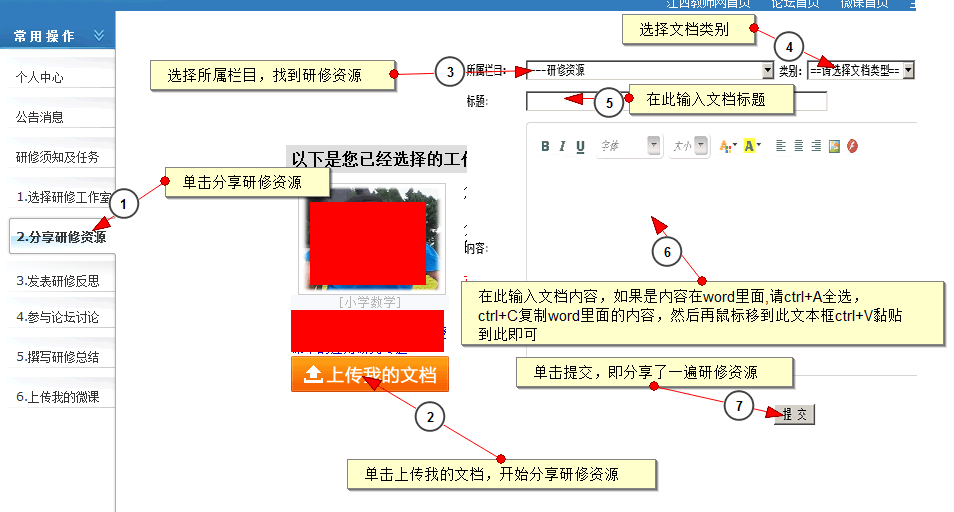 第二步:怎样分享研修资源?(操作如下图)