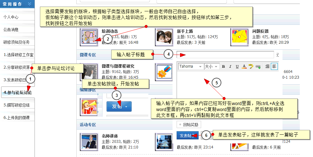 第四步:怎样参与论坛讨论?(操作如下图)