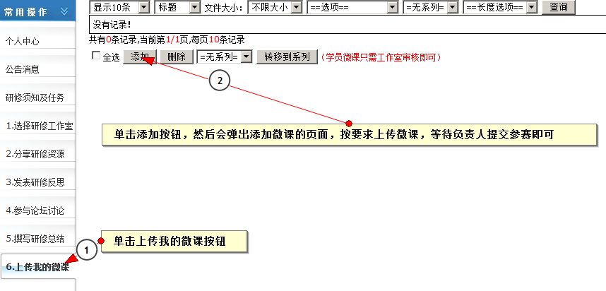 第六步:怎样上传微课?(操作如下图)