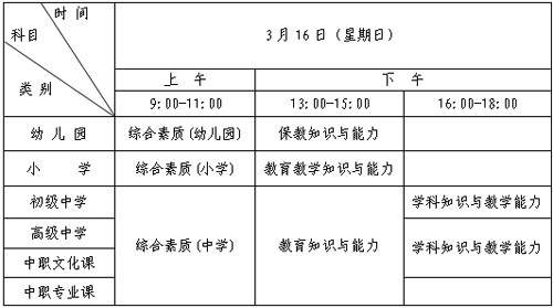 考试日期为2014年3月16日,各科目考试时间为120分钟,全部为纸笔考试,实行答题卡答题形式,使用2B铅笔填涂和签字笔答题两种方式完成答题。具体时间安排如下: