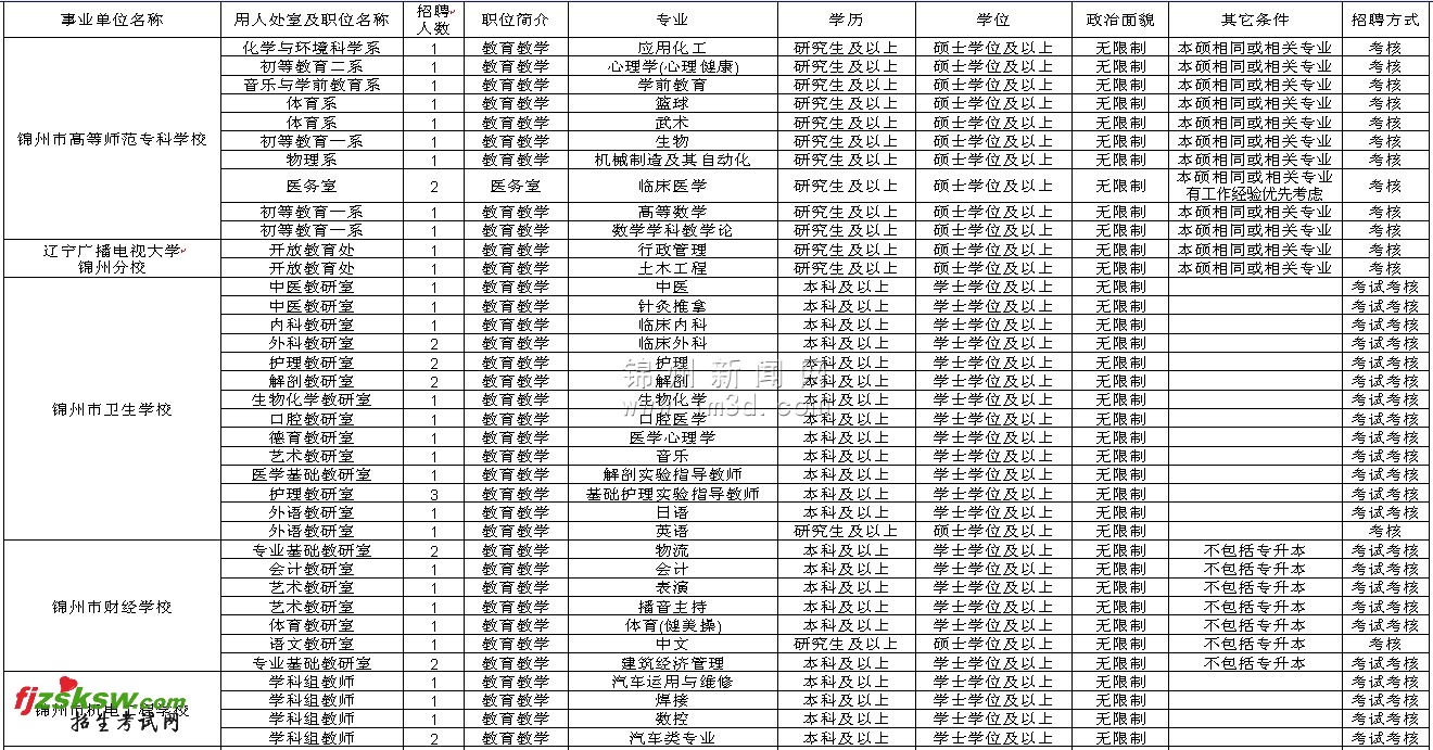 具体招聘职位、招聘条件、报考办法、考试安排等详细信息,可通过锦州教育网(www.lnjzedu.gov.cn)查询。