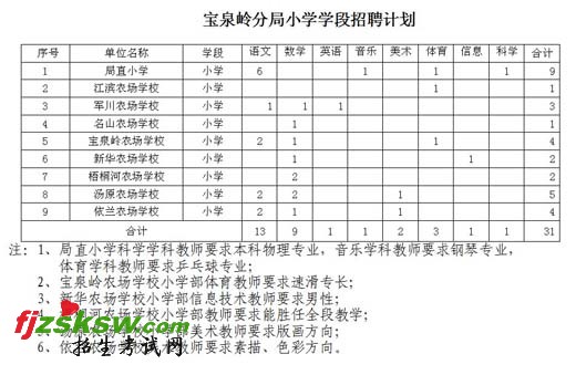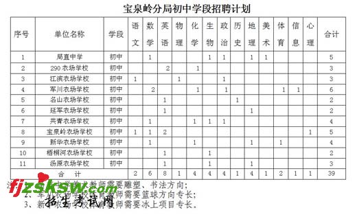 为深入贯彻落实国家和黑龙江省中长期教育改革和发展规划纲要,不断优化教师队伍结构,提高中小学教师的专业素质,进一步提高全局的办学水平,根据分局《宝泉岭分局教育系统2009—2013年引进大学生专项规划》(宝垦局文【2009】65号),经分局批准,宝泉岭分局面向社会公开招聘大学生教师,现将招聘事项公告如下: