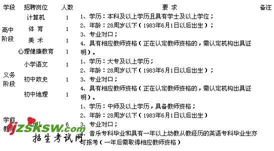 经研究,2011年黄山区教育系统计划招聘教师13名,其中高中教育阶段4名,义务教育阶段3名,学前教育阶段6名(详见招聘岗位、人数及要求)。选调教师2名(详见选调岗位、人数及要求)。