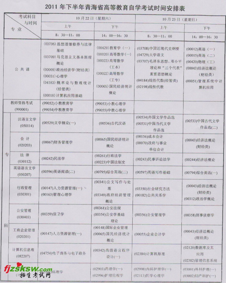 [组图]青海2011年下半年教师资格证考试时间安排通知