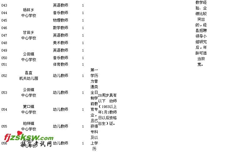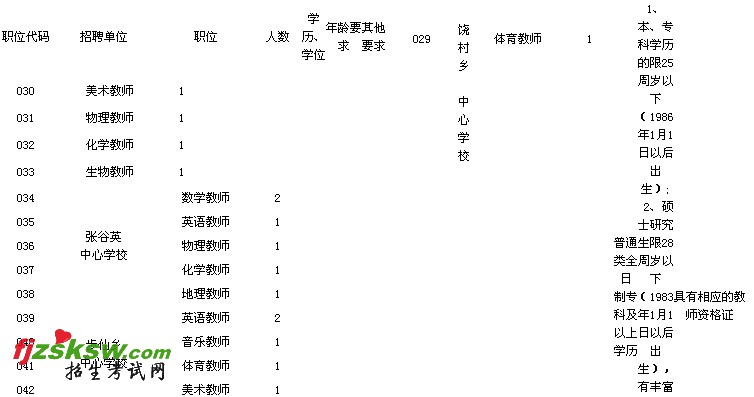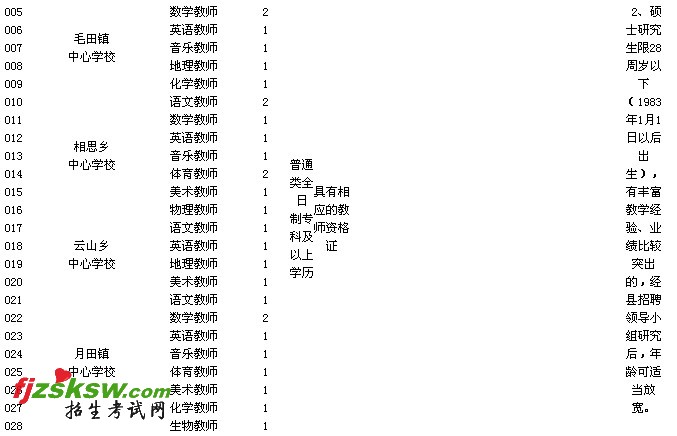 (2)乡镇中心学校音乐、体育、美术三科教师职位