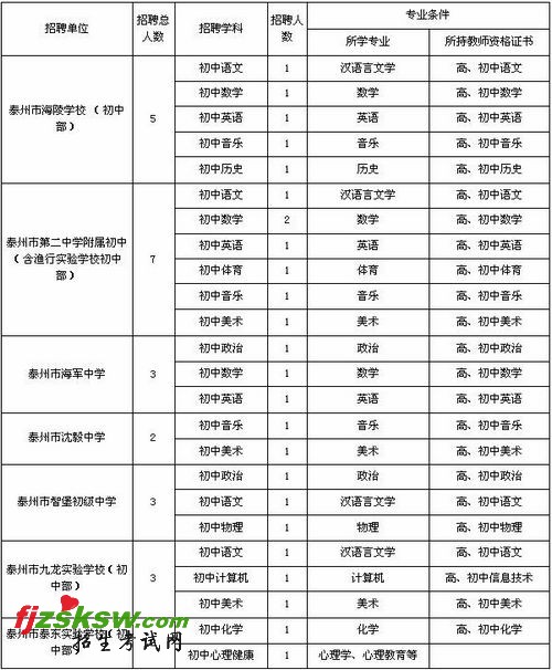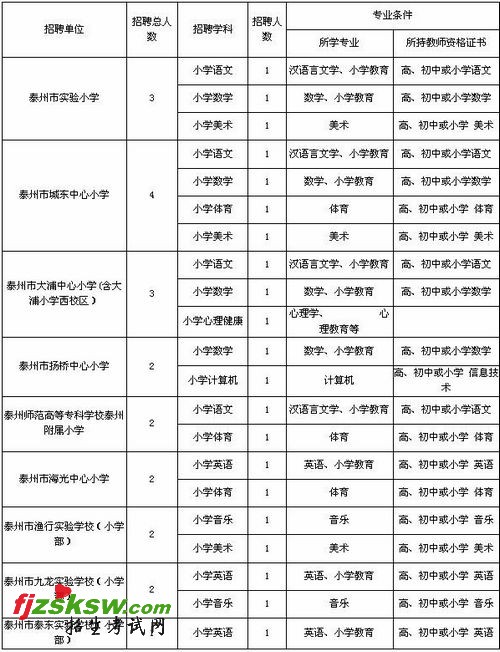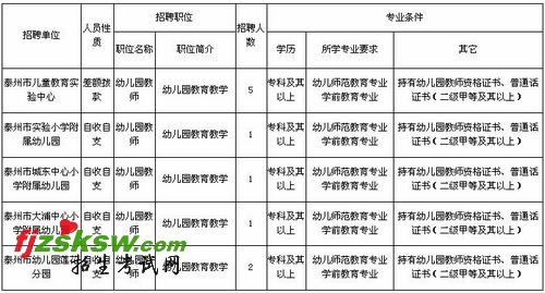 2.符合泰州市海陵区2011年公开招聘中小学、幼儿园、市少年宫专业课教师计划一览表规定的相关条件。